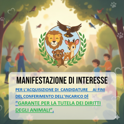 Manifestazione di interesse per l’acquisizione di candidature ai fini del conferimento dell’incarico di “Garante per la tutela dei diritti degli animali